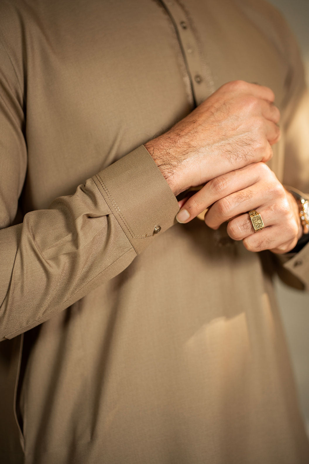 Graceful and elegant, this beige embroidered kameez shalwar features intricate detailing for a sophisticated look. Perfect for weddings, festive occasions, and cultural gatherings.