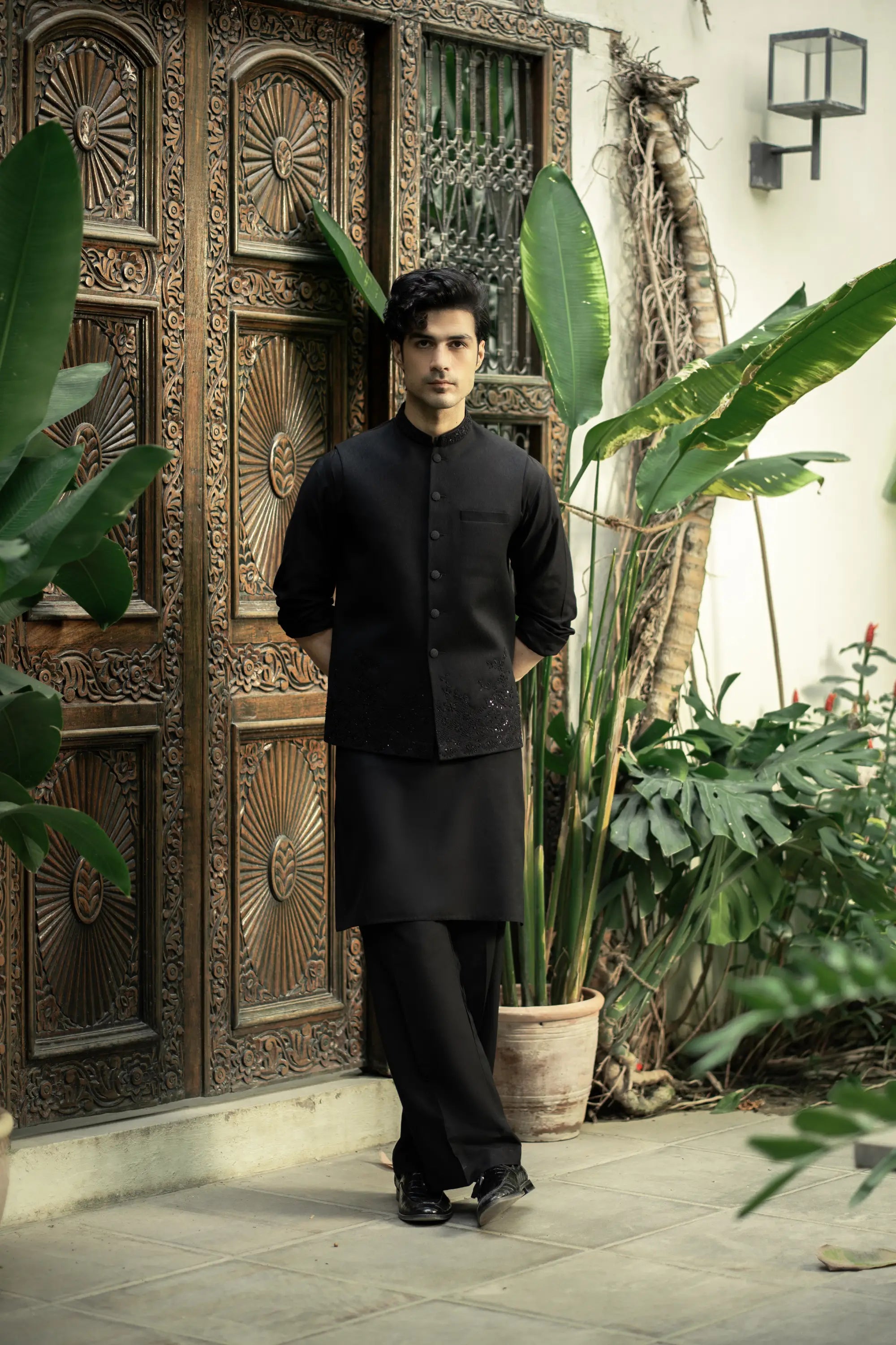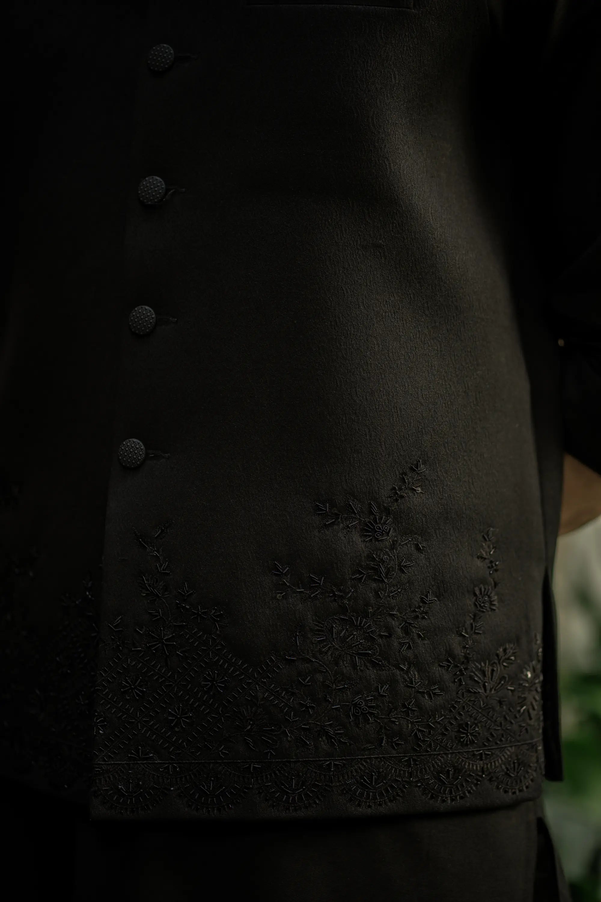 Elevate your formal wardrobe with this elegant black embroidered waistcoat, perfect for weddings, formal events, and special occasions.