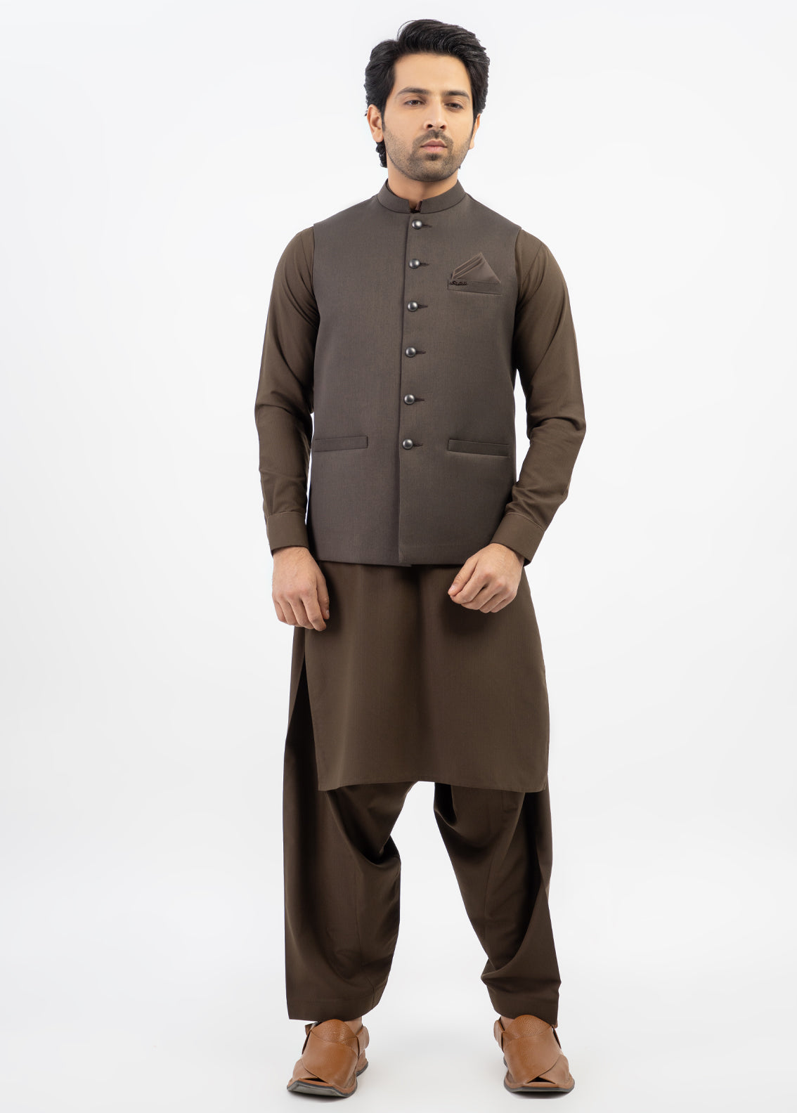 Classic and sophisticated, the dark brown plain men's waistcoat adds a timeless touch to any traditional or formal outfit. Perfect for weddings, festive occasions, and special gatherings.