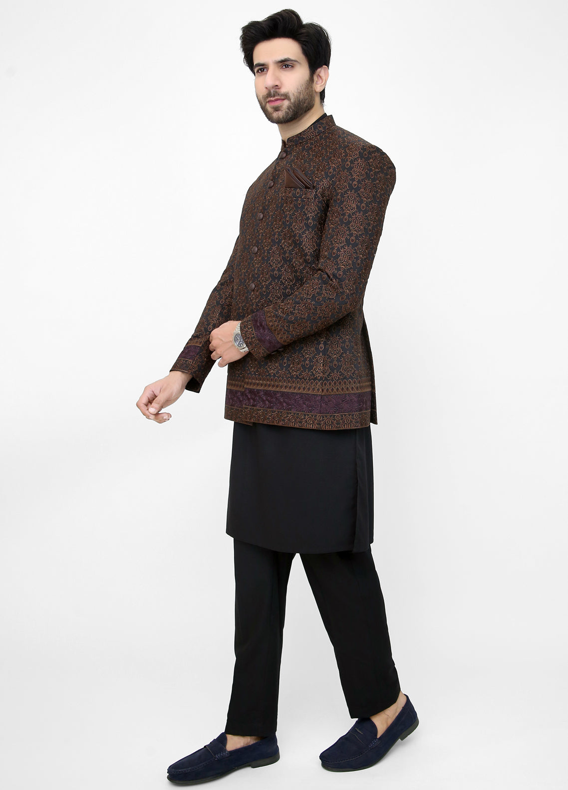 The coat’s sleek black color provides a versatile base, while the detailed embroidery adds a sophisticated touch, making you stand out effortlessly. Pair it with a classic kurta, sherwani, or dress pants for a truly regal look.