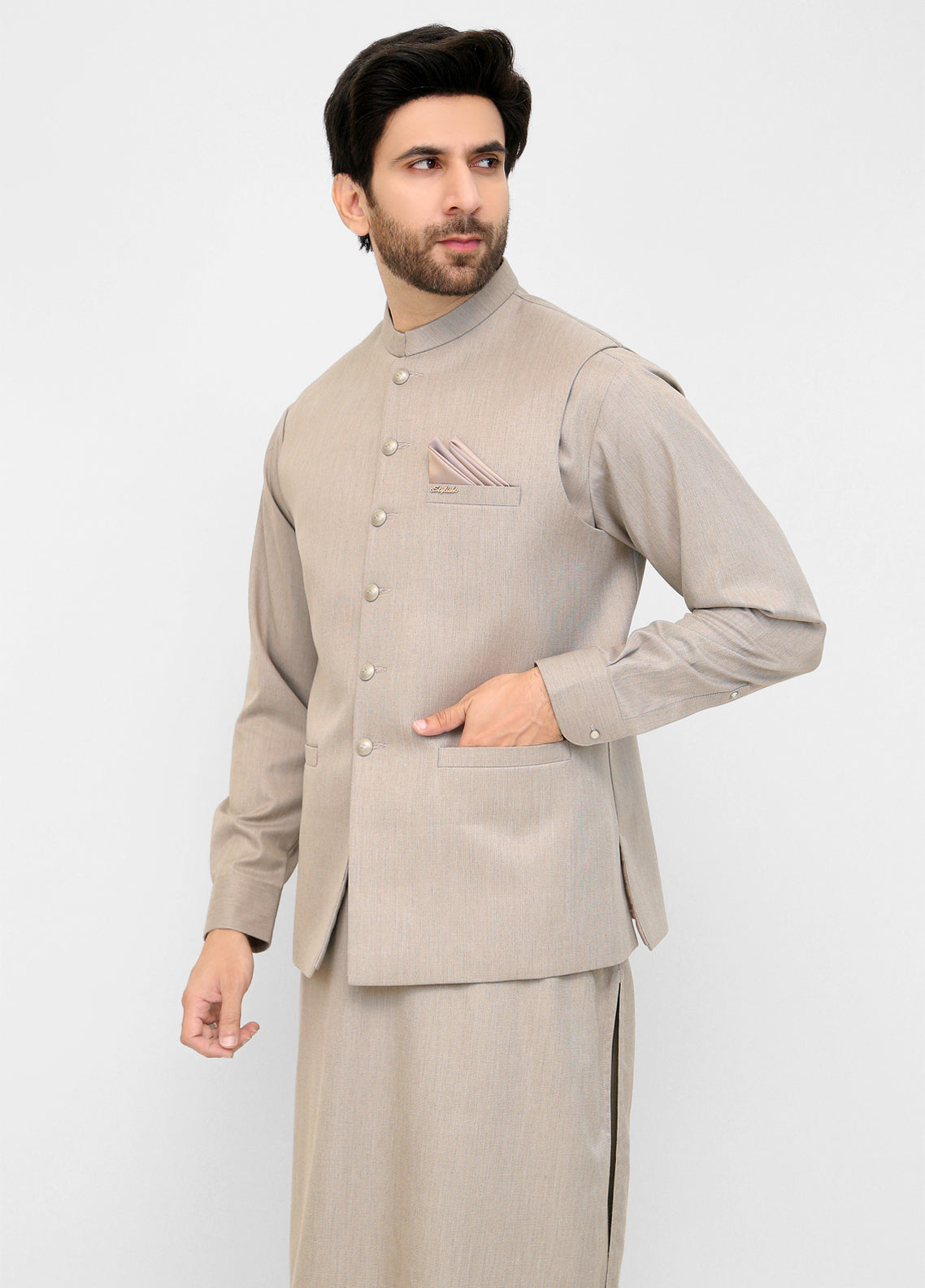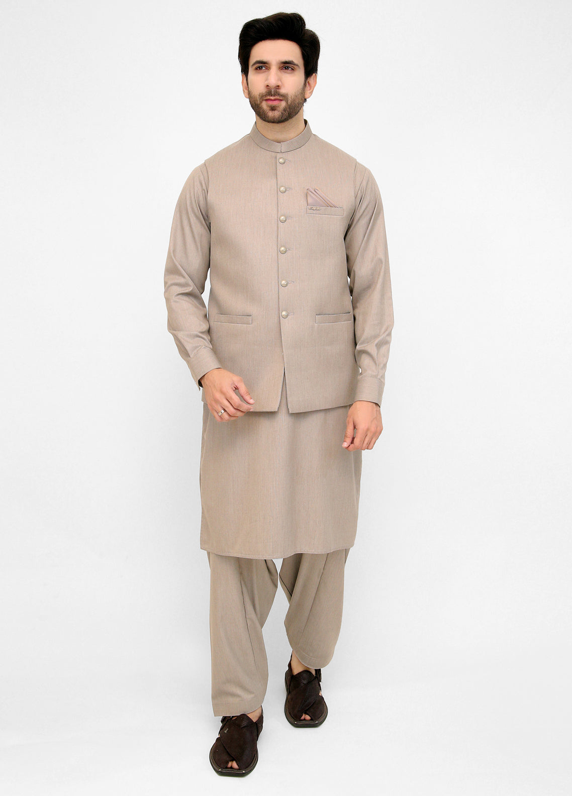 Show up in style with an intricately men waist coat suit to complete your look. Buy men waistcoat suit from Stylish Garments. We have a complete range of embroidered waistcoat in very high-quality fabric stuff. Complete men's eastern clothing range including men's sherwanis, men's shalwar kameez and waistcoat latest collection available. You can easily order it from any corner of Pakistan because we are delivering it all over Pakistan.