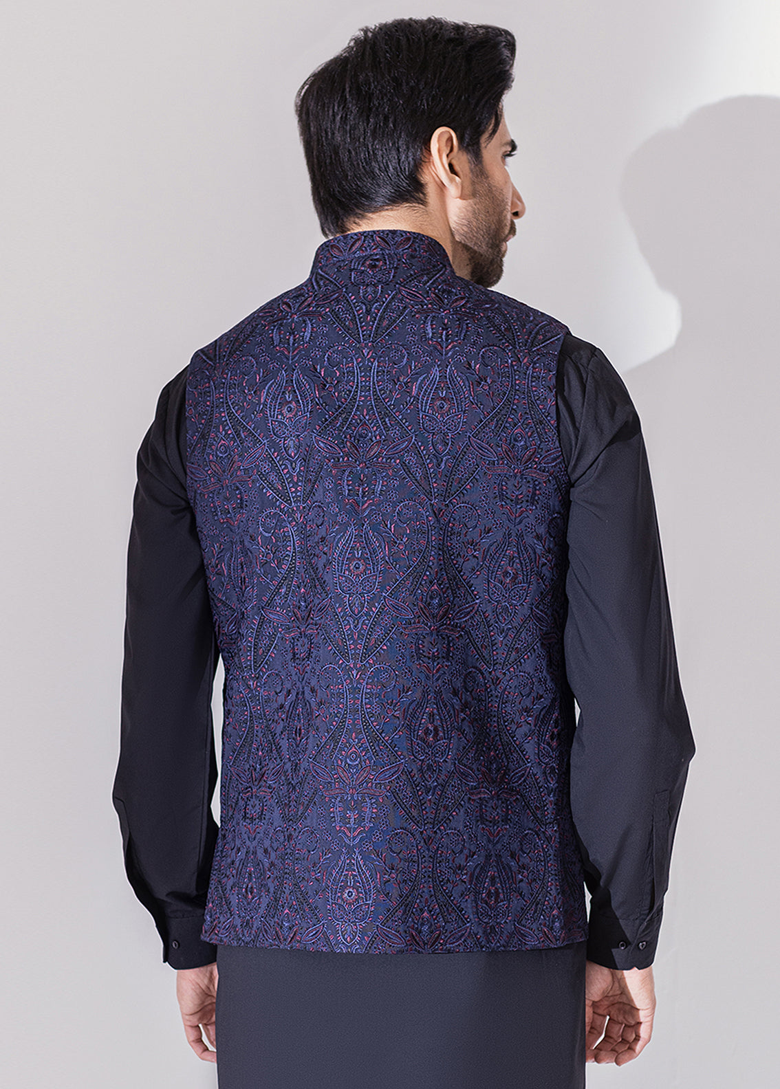 Show up in style with an intricately embroidered waistcoat to complete your look. Buy navy blue full embroidered waistcoat from Stylish Garments. We have a complete range of embroidered waistcoat in very high-quality fabric stuff. Complete men's eastern clothing range including men's sherwanis, men's shalwar kameez and waistcoat latest collection available. You can easily order it from any corner of Pakistan because we are delivering it all over Pakistan.