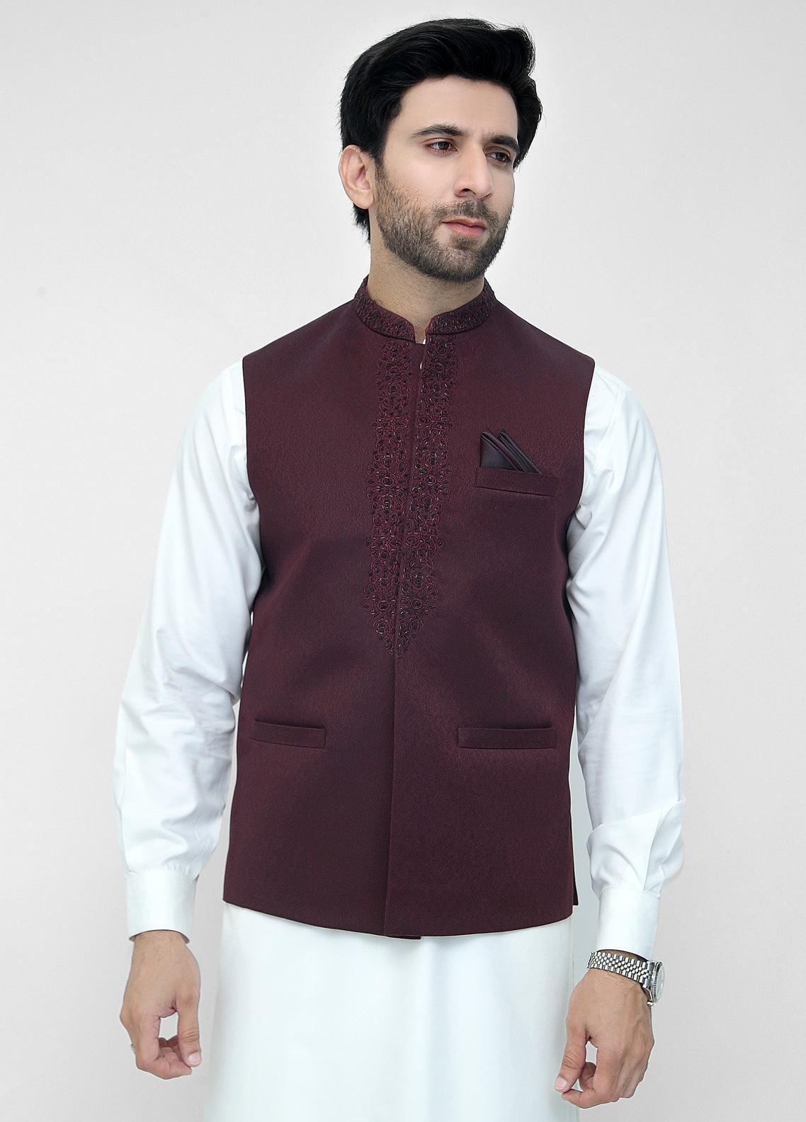 Elegant and regal, the hand-embroidered maroon waistcoat features intricate craftsmanship, adding a sophisticated touch to any traditional or formal attire. Perfect for weddings, festive occasions, and cultural gatherings.