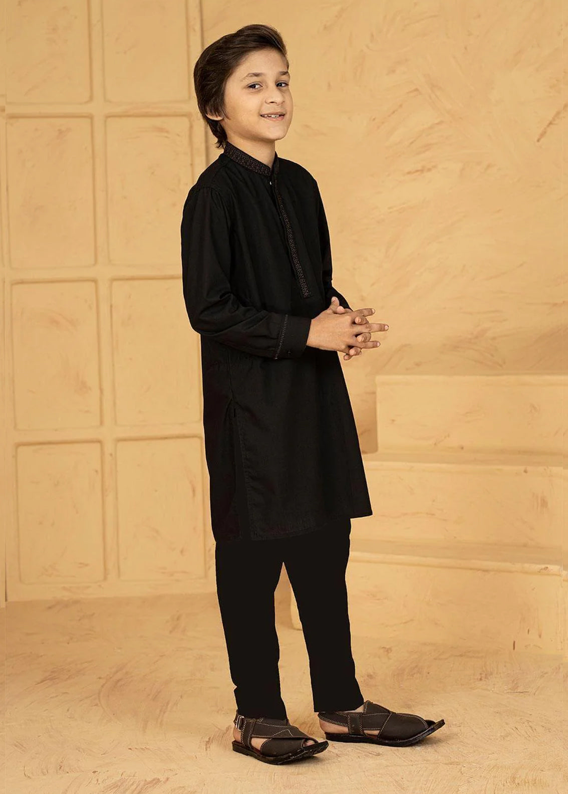 New Collection 2024, Kids Black Kurta Pajamas features lightweight fabrics, bright colors, and intricate embroidery, perfect for special occasions or cultural events.