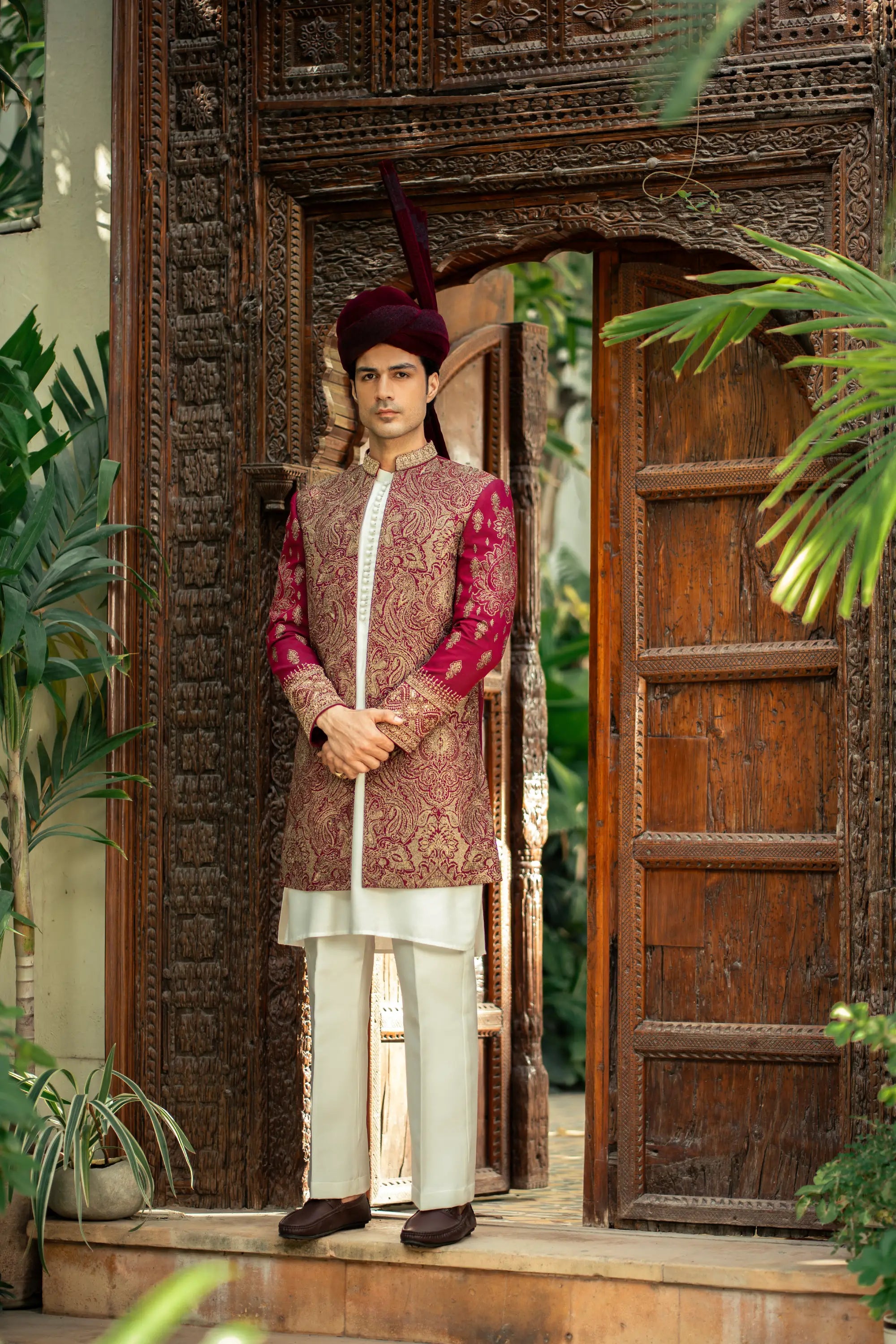 Maroon Embroidred Front Open Sherwani GS-5157