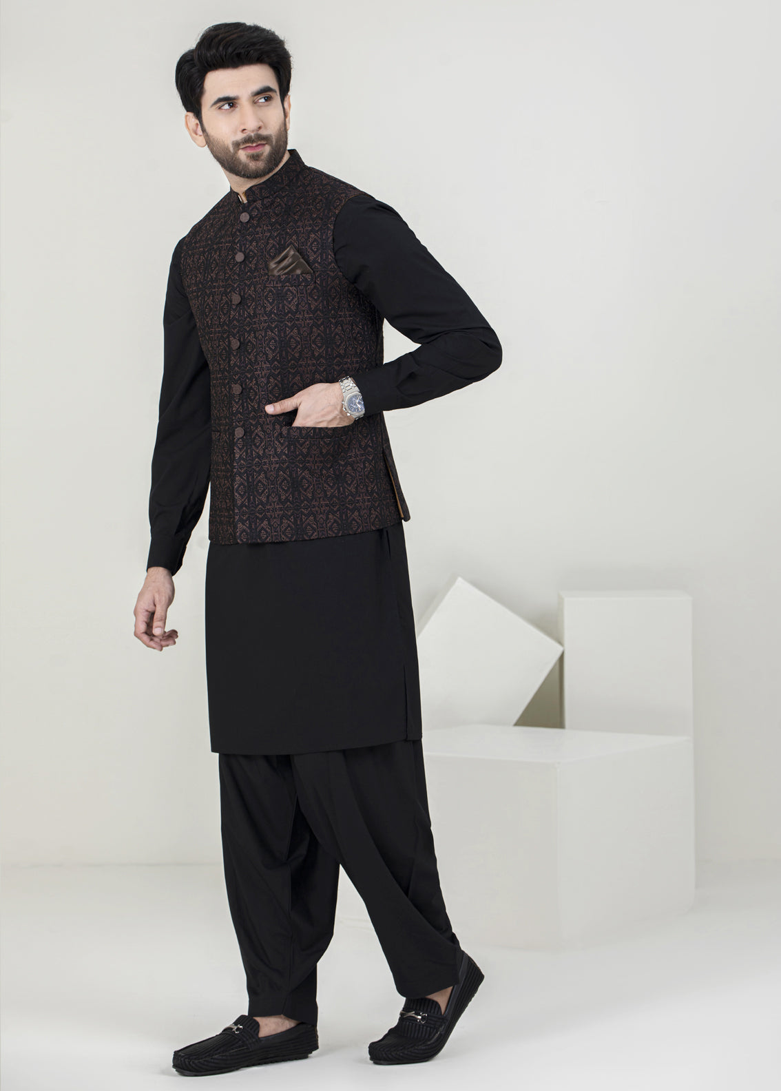 Show up in style with an intricately embroidered waistcoat to complete your look. Buy black brown men waistcoat from Stylish Garments. We have a complete range of embroidered waistcoat in very high-quality fabric stuff. Complete men's eastern clothing range including men sherwanis, men shalwar kameez and waistcoat latest collection available. You can easily order it from any corner of Pakistan because we are delivering it all over Pakistan.