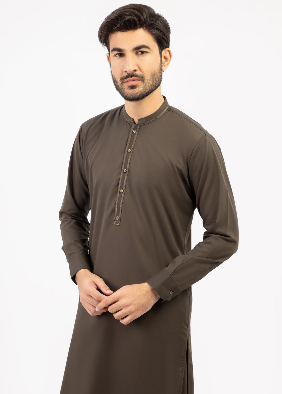 Embrace a bold and sophisticated look with this dark brown men's shalwar kameez. Crafted from premium-quality fabric, this shalwar kameez offers a perfect combination of comfort and elegance. Whether for cultural gatherings, formal events, or everyday wear, this dark brown outfit adds a touch of richness to your wardrobe. Elevate your traditional style with this timeless and versatile ensemble for men.