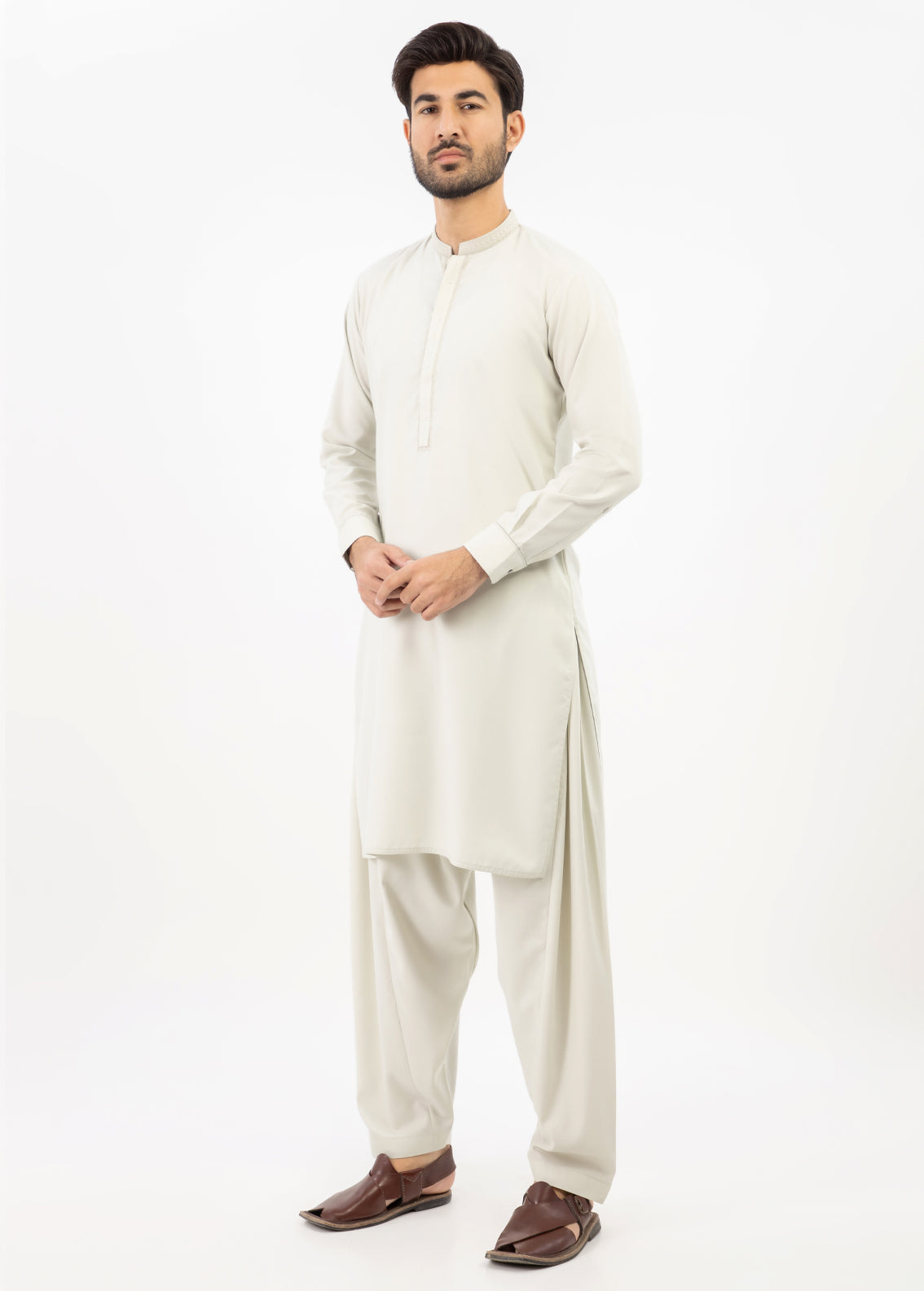 Men Shalwar Kameez Light Green is made with a premium fabric. This Men Kameez Shalwar combines comfort, style, and elegance with its classic design. The unique blend ensures durability, providing a perfect fit for any occasion.
