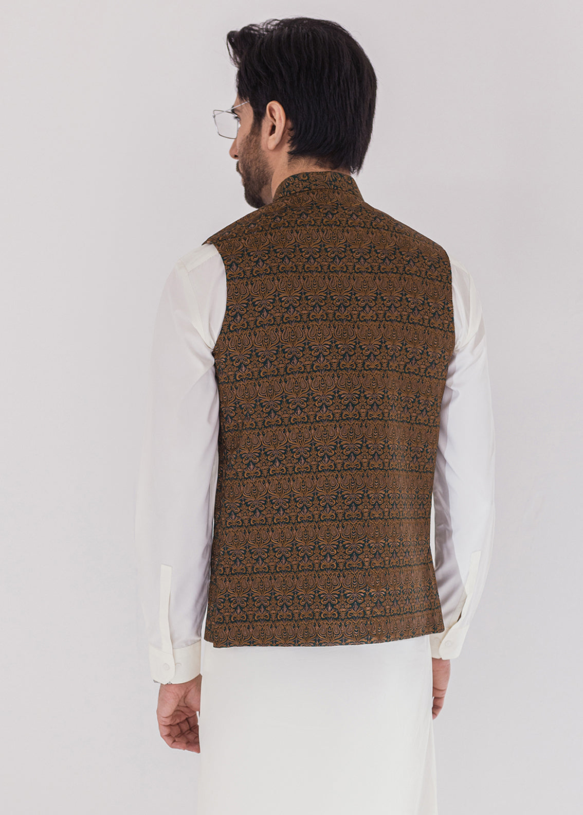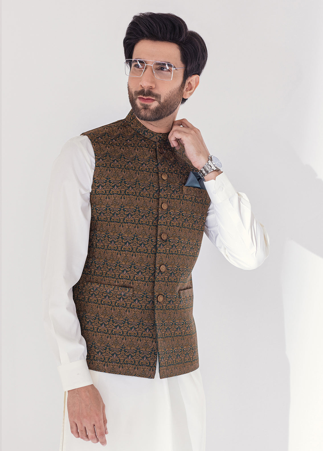 Show up in style with an intricately embroidered waistcoat to complete your look. Buy golden brown men waistcoat from Stylish Garments. We have a complete range of embroidered waistcoat in very high-quality fabric stuff. Complete men's eastern clothing range including men's sherwanis, men's shalwar kameez and waistcoat latest collection available. You can easily order it from any corner of Pakistan because we are delivering it all over Pakistan.