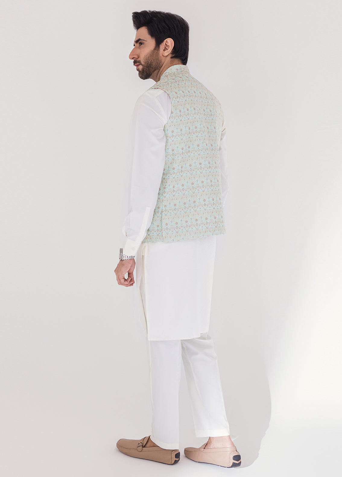 Show up in style with an intricately embroidered waistcoat to complete your look. Buy light blue green men waistcoat from Stylish Garments. We have a complete range of embroidered waistcoat in very high-quality fabric stuff. Complete men's eastern clothing range including men's sherwanis, men's shalwar kameez and waistcoat latest collection available. You can easily order it from any corner of Pakistan because we are delivering it all over Pakistan.