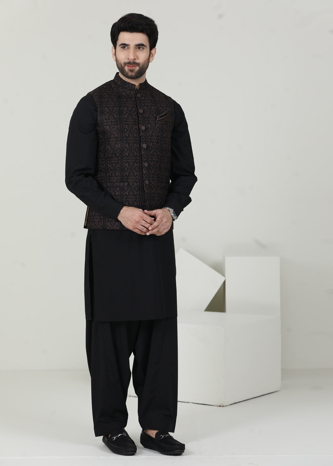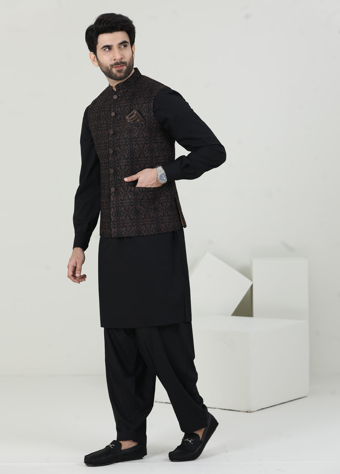 Show up in style with an intricately embroidered waistcoat to complete your look. Buy black brown men waistcoat from Stylish Garments. We have a complete range of embroidered waistcoat in very high-quality fabric stuff. Complete men's eastern clothing range including men's sherwanis, men's shalwar kameez and waistcoat latest collection available. You can easily order it from any corner of Pakistan because we are delivering it all over Pakistan.