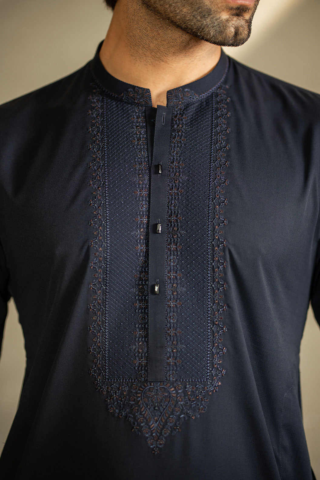 Elevate your formal wardrobe with this premium navy blue embroidered kurta trouser, perfect for weddings, formal events, and special occasions.