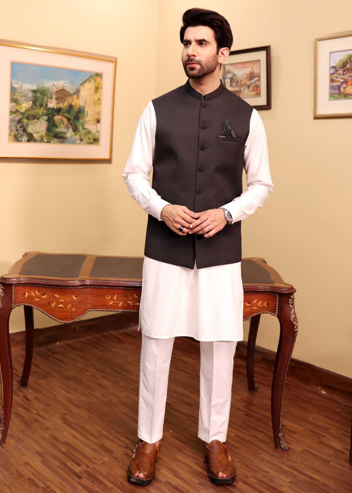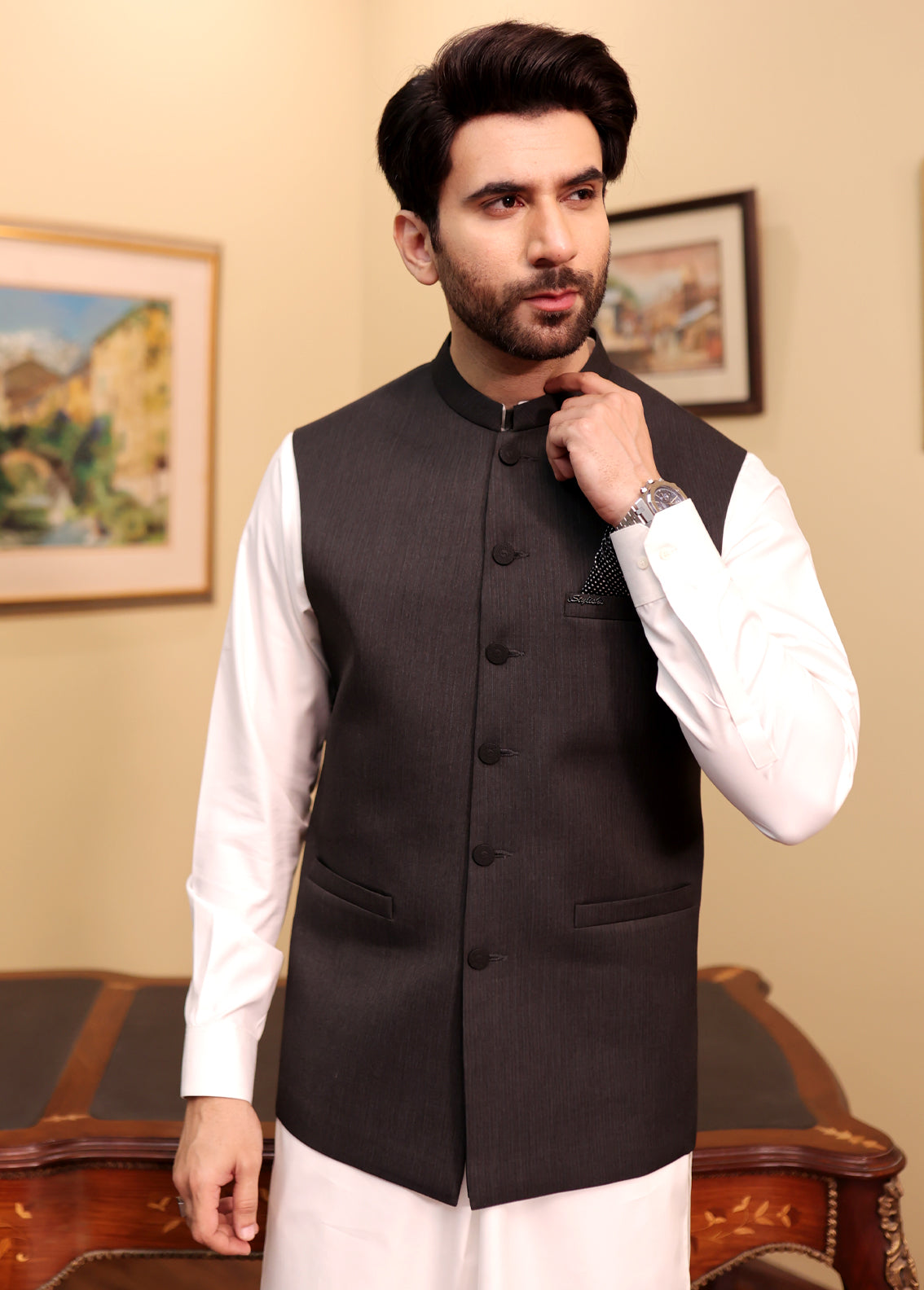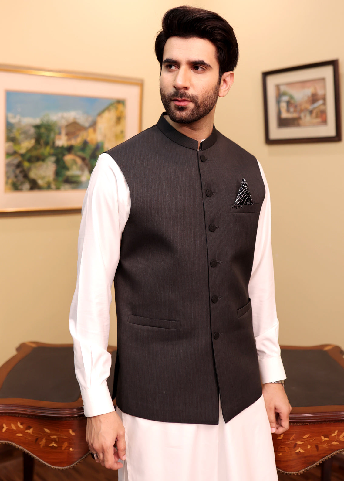 Timeless and elegant, the plain black men's waistcoat adds a sophisticated touch to any traditional or formal outfit. Perfect for weddings, festive occasions, and formal gatherings.