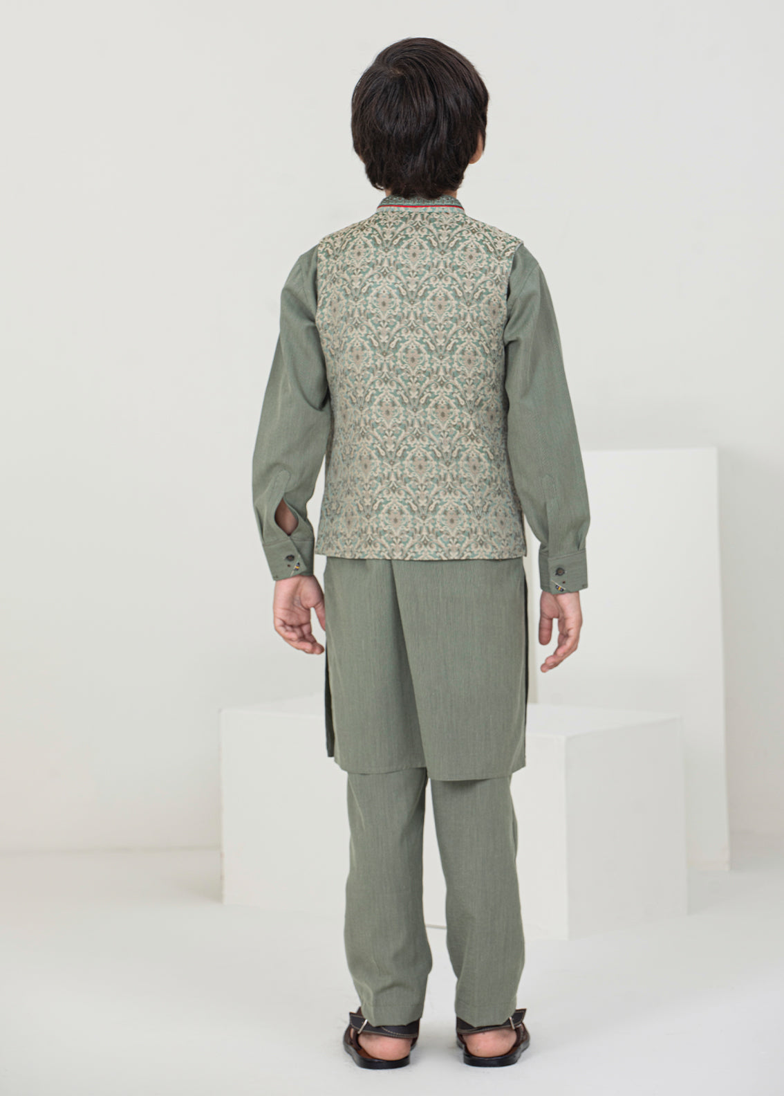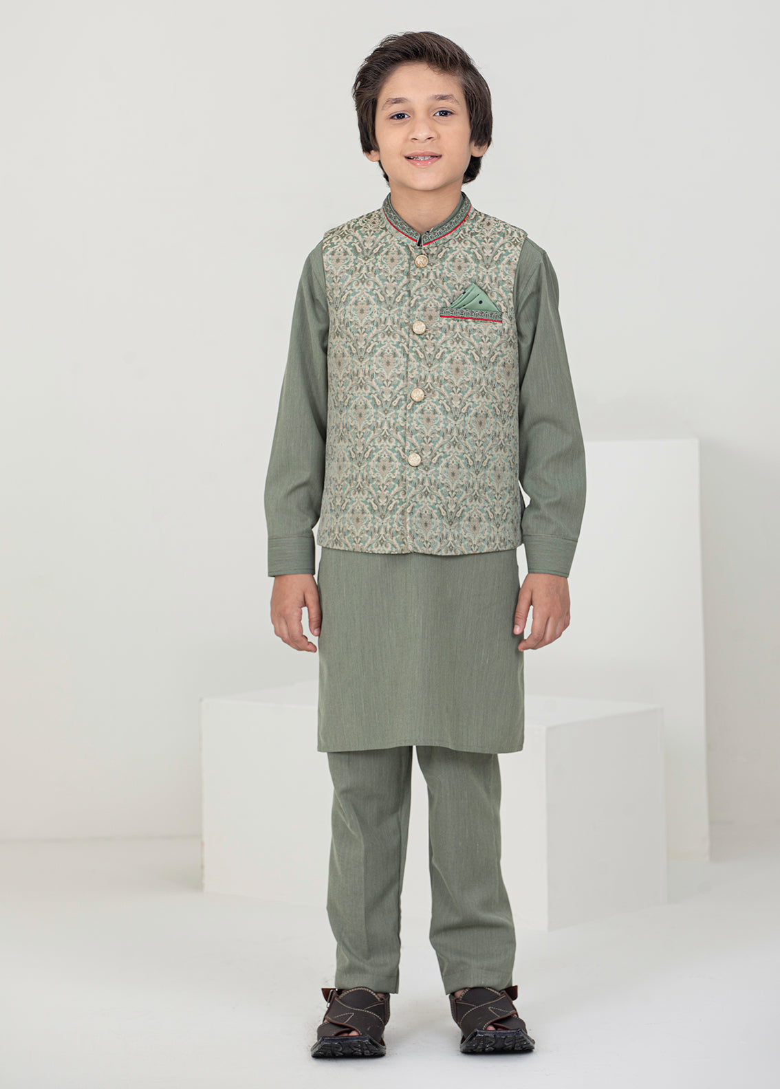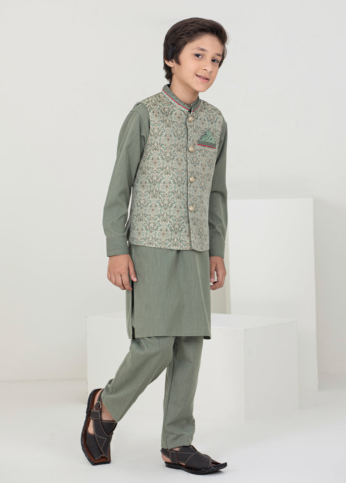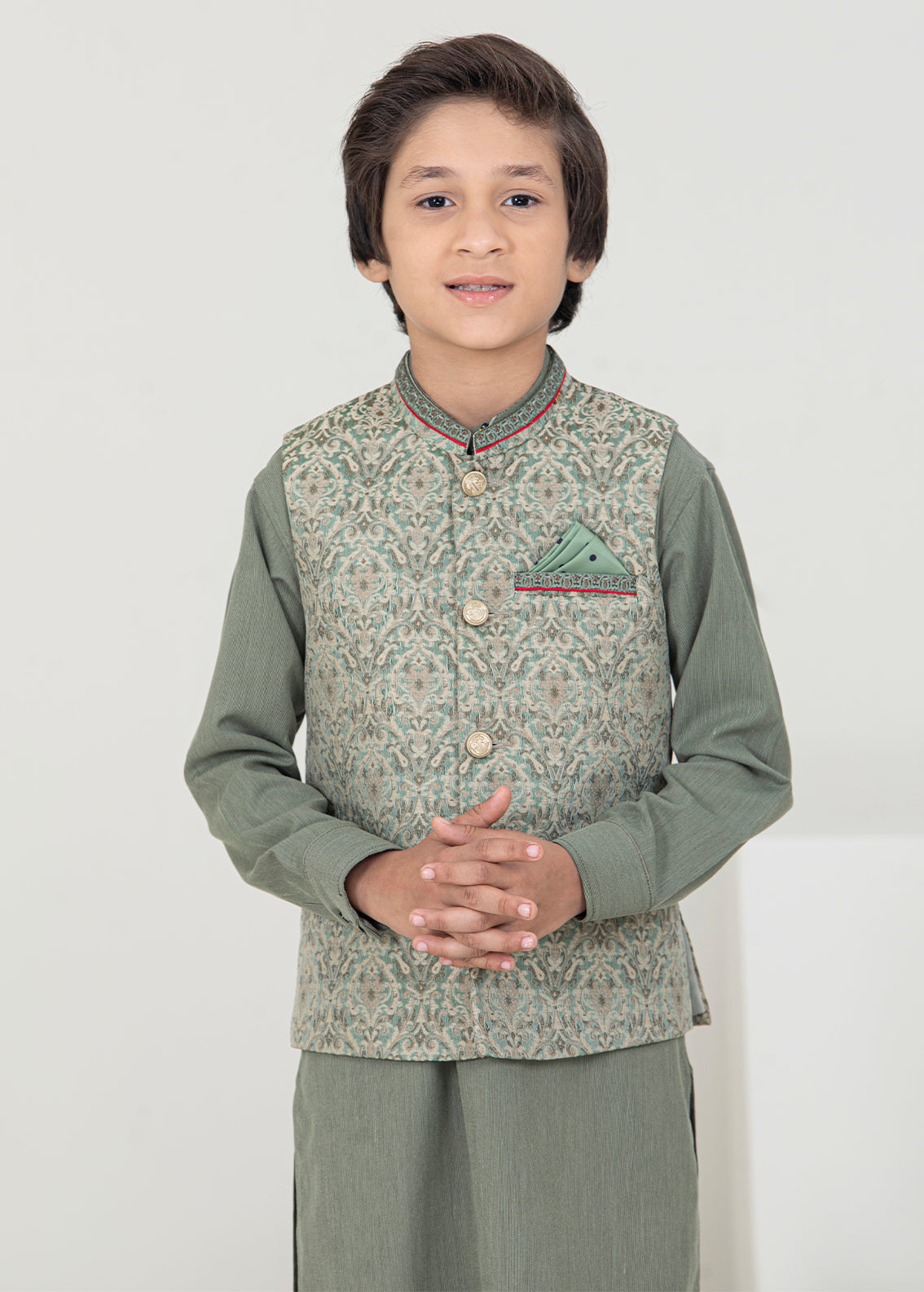 Kids light green shalwar kameez with waistcoat at boasts lightweight, breathable fabrics, bright colors, and playful designs ensuring your little ones stay stylish and comfortable.